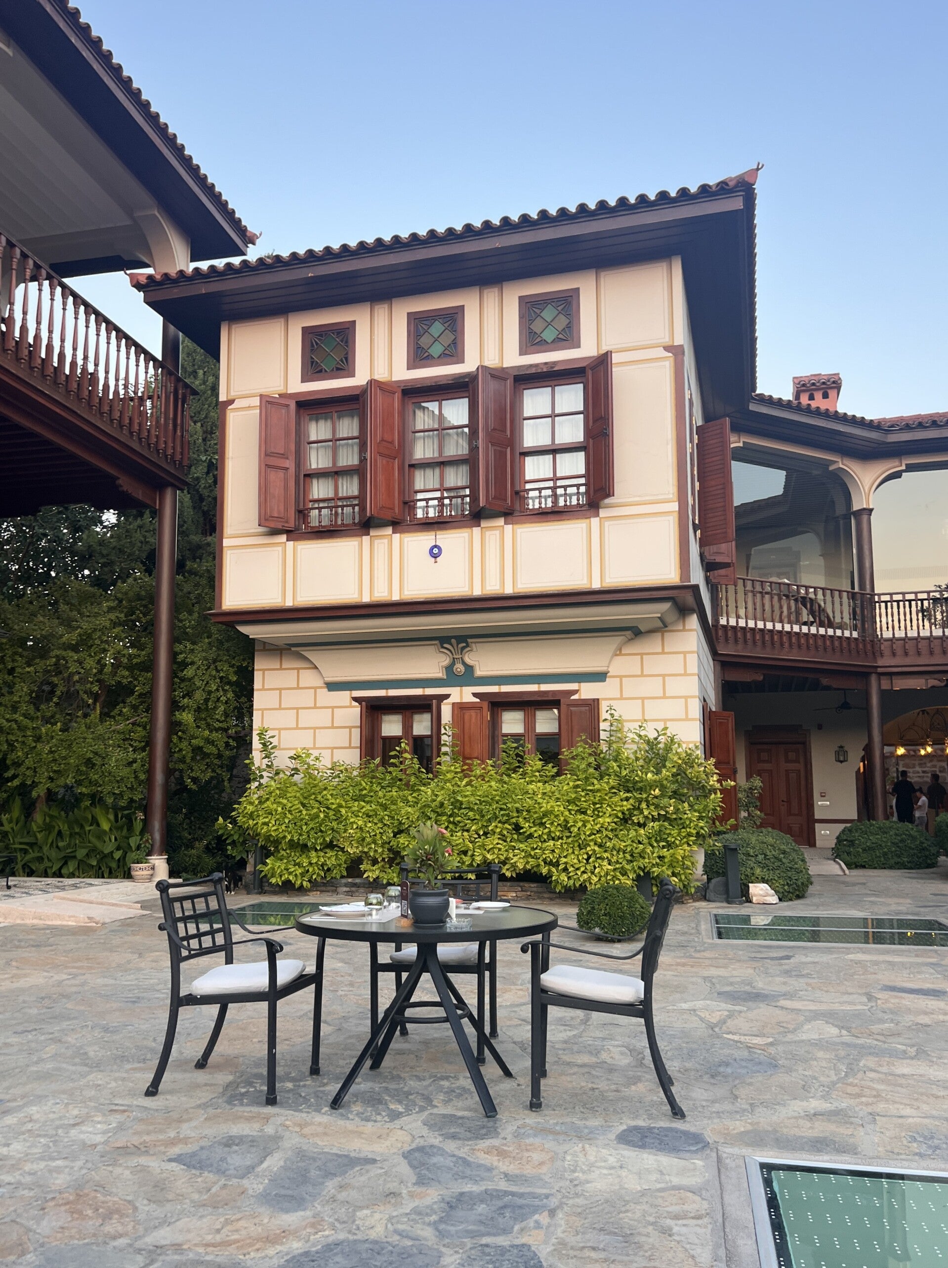Terugblik op deze zomer: Eindelijk is het eind juli, we gaan 10 dagen op vakantie. We gaan naar Kalkan en zullen alleen maar van zon, zee en een goed boek gaan genieten. Maar eerst rijden we naar Antalya, onze zoon zal daar landen. Hij vliegt vanuit Düsseldorf. Helaas het is 45 graden en zoals gebruikelijk in Turkije sta je niet in een aankomsthal maar buiten in de brandende zon te wachten. Ook als is het maar 1 uur vertraging, het voelt als een hele middag. Eindelijk is hij er dan.....het is te laat om nog naar Kalkan te rijden dus overnachten we in het Hilton in Antalya en na ingecheckt te hebben lopen we naar het oude gedeelte van de stad. We besluiten in de tuin van het Ruin Adalia Hotel te eten. Als je over de binnenplaats van het hotel loopt, loop je over een glasplaten waardoorheen je oude opgravingen ziet. Naast hotel, restaurant is dit ook een museum.
